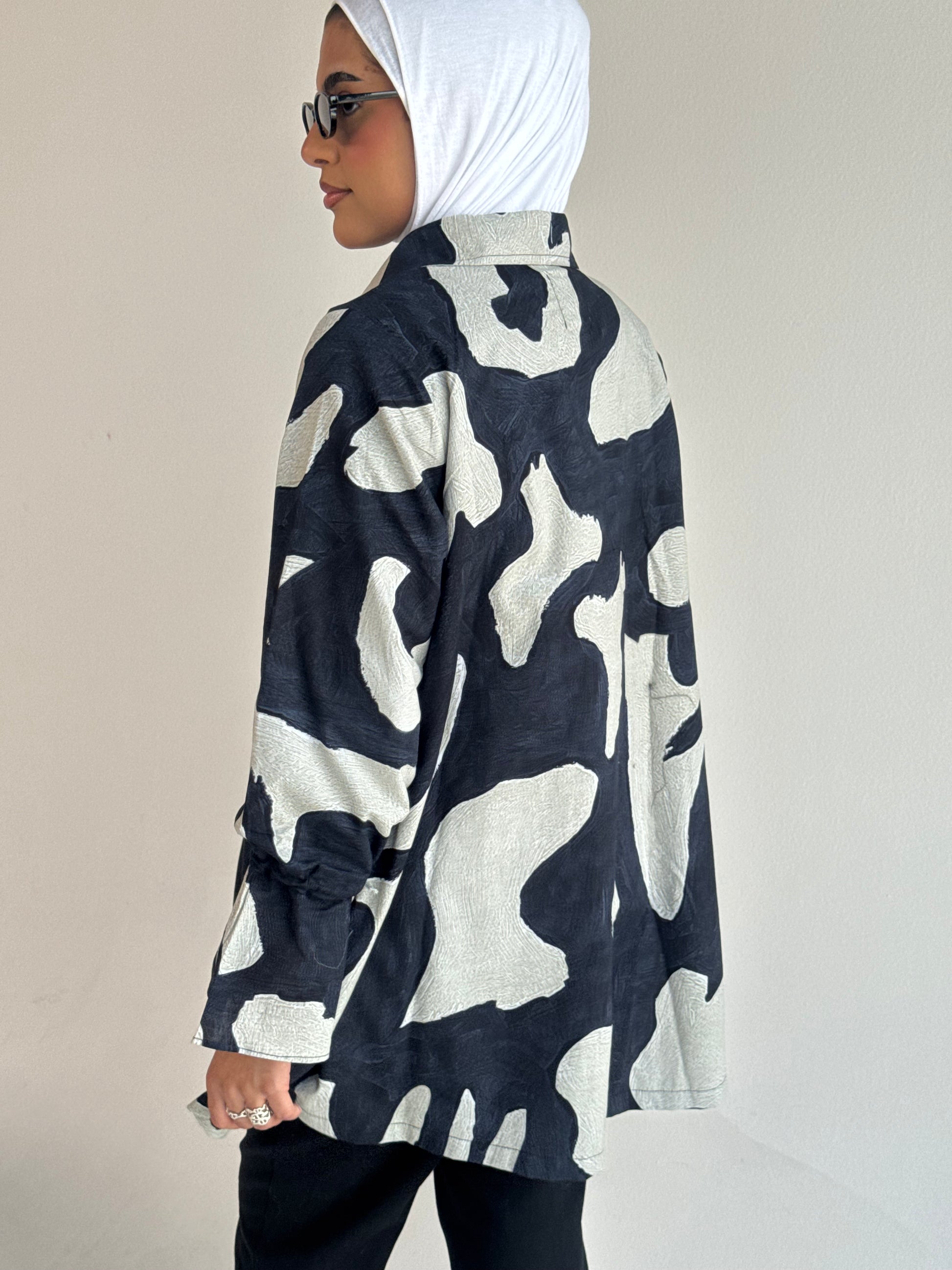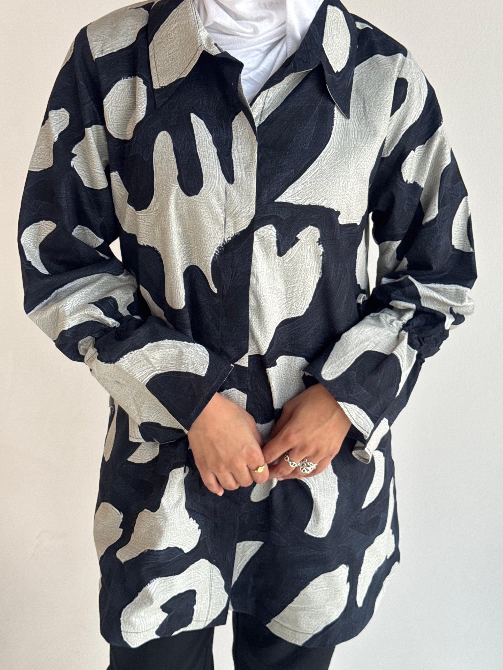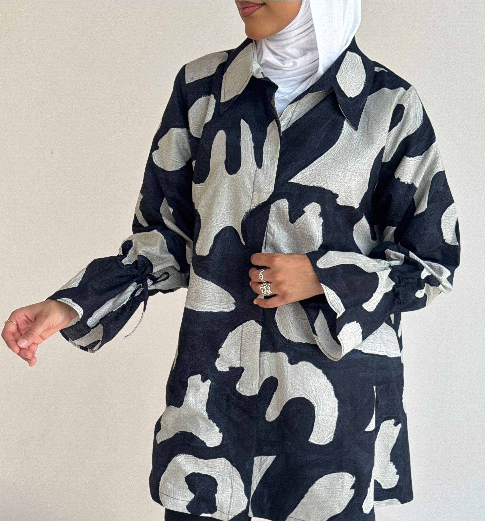 مستوحى من أجواء الشواطئ الأوروبية، توب Cala Luna يجمع بين الأناقة والراحة بتصميم مميز بطبعة جريئة بالأسود والرمادي. بقصّة انسيابية وطول 33 إنش، مثالي لعطلات الصيف، جولات البحر، أو إطلالات مسائية أنيقة في المدينة.